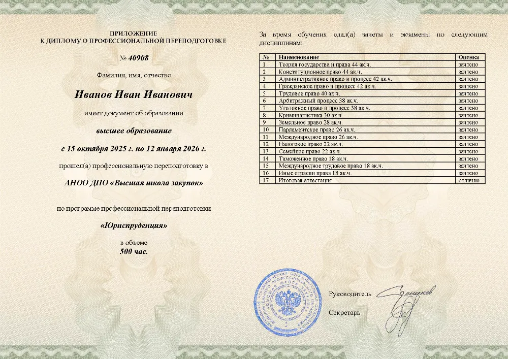 Профессиональная переподготовка, 500 академических часов, 16 модулей: теория государства и права, конституционное, гражданское, уголовное и трудовое право, арбитражный и административный процесс, налоговое, земельное, таможенное и международное право. Онлайн-обучение в в Орле с итоговой аттестацией.